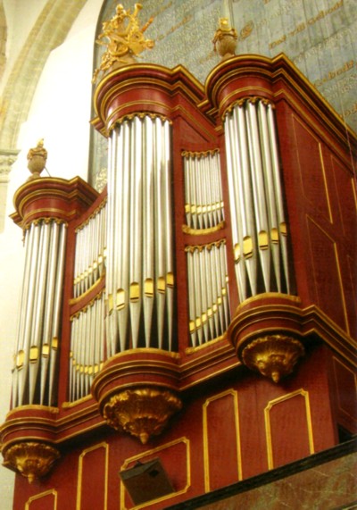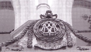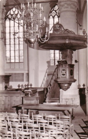 De initialen zijn van Aleida van Bueren, de schenkster van de preekstoel. Zij werd schuin tegenover de kansel in 1779 begraven.