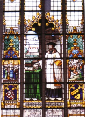 Zie hier het nog blinde raam dat tijdens de restauratie van de kerk in 1917 opengebroken werd en waarin nu het Coppelstock raam is geplaatst. In zijn ongepubliceerd 'oorlogsdagboek' maakt Been opmerkingen over het ontdekken en openbreken van het raam.