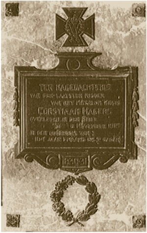 Ter nagedachtenis aan de laatste ridder van het metalen Kruis, Corstiaan Hagers, overleden in Den Briel, 6 November 1915 in de ouderdom van 104 jaar; 1 maand en 2 dagen.