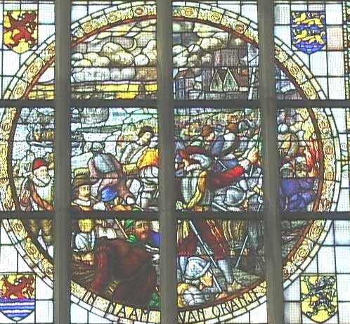 Het idee om de kerk een gedenktafel te schenken kwam van Been. Op de massale gegoten bronzen koperen plaat (1.20x2.20meter) , staat links het inschrift gegrift: 'Van dezen toren wapperde voor de eerste maal de driekleur als symbool, dat het Nederlandsche Volk met Gods hulp, vrij en onafhankelijk wil zijn en blijven. 'Rechts is ingegrift: 'Mijn schildt ende Betrouwen, Sijt Ghij, o Godt mijn Heer! Op U soo wil ick Bouwen,Verlaat mij nimmermeer! Dat ick noch Vroom magh Blijven, U dienaer taller Stont, De tyrany verdrijven, Die mij mijn Hart doorwont. In het midden zien we een geuzenschip afgebeeld. Daaronder het wapen van de Verenigde Provinciën met als onderschrift het devies van de Oranjes: Je maintiendrai.' 1572-1922.