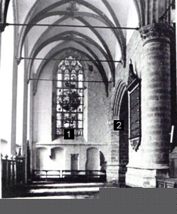 De gedenktafelen werden vervaardigd door C.J. v.d. Hof en staan aan het einde van het Middenschip aan de Westzijde.